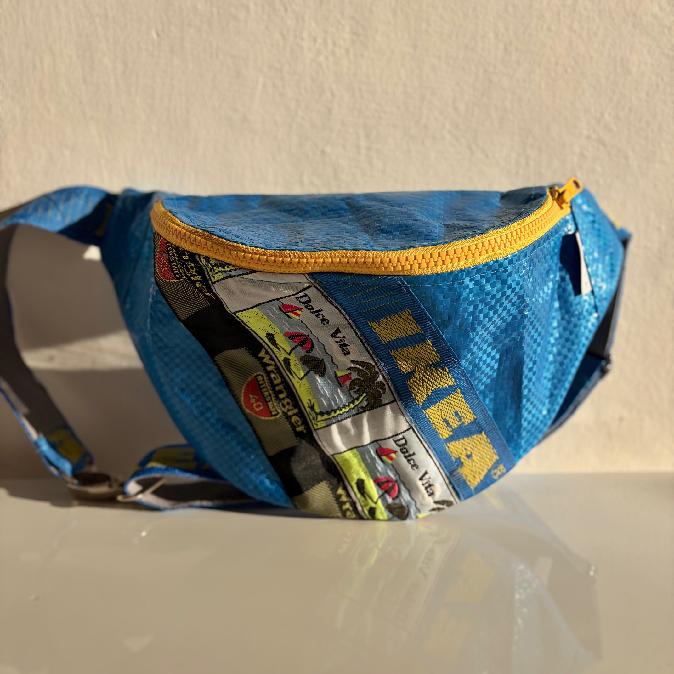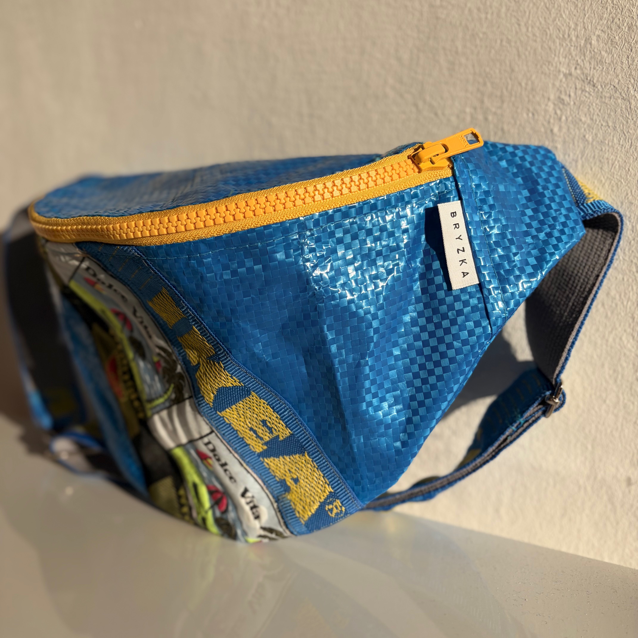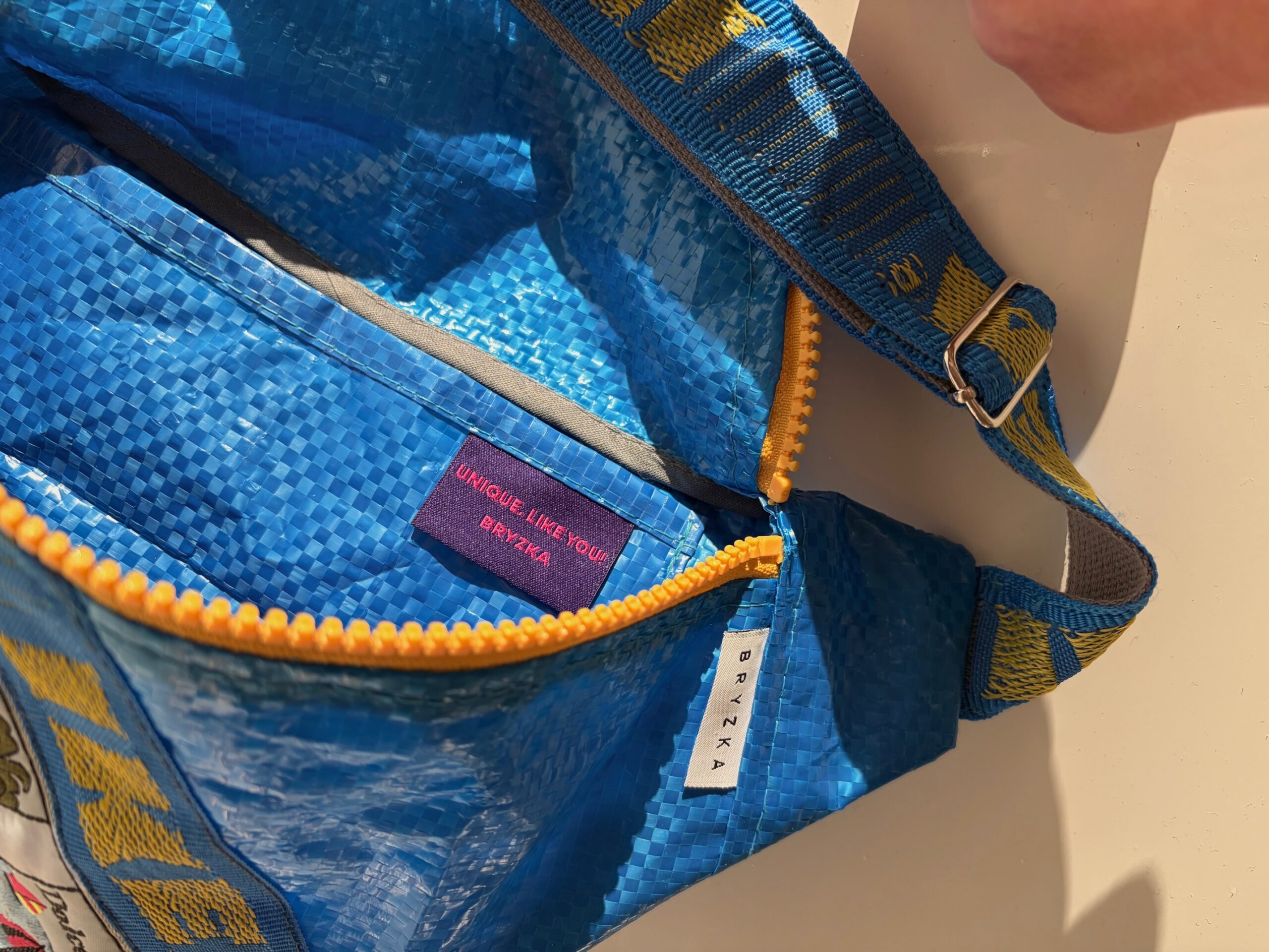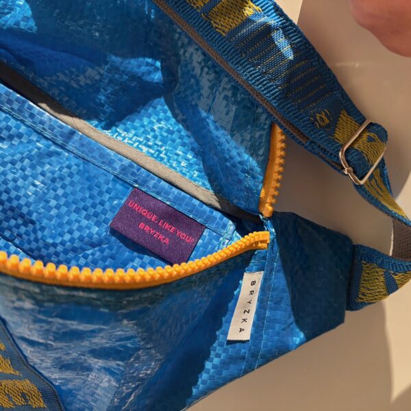 Wykonana z legendarnej, wytrzymałej torby FRAKTA, ta nerka to coś więcej niż tylko saszetka – to manifest kreatywności. Charakterystyczna niebieska plecionka i żółte detale tworzą look, którego nie da się pomylić z niczym innym.