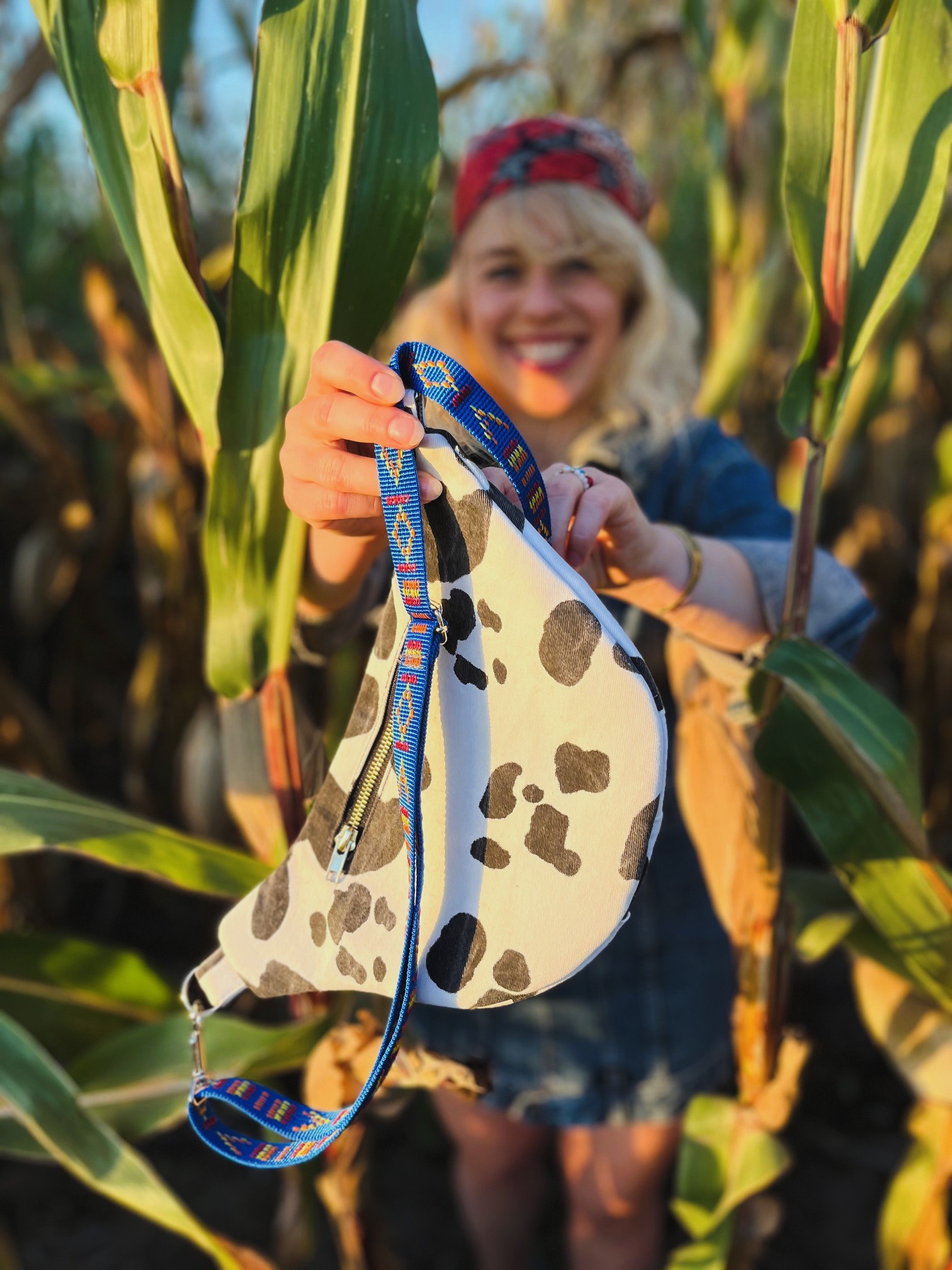 Całość jest nie tylko stylowa, ale też ekologiczna – powstała z upcyklingu, dzięki czemu łączy modę z ideą zero waste. To praktyczny dodatek na co dzień, który podkreśli indywidualny styl i przyciągnie uwagę.