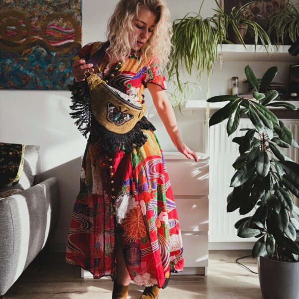| Rozmiar | M, mieszczący niezbędne rzeczy, telefon, mały portfel, chusteczki, okulary, klucze, |