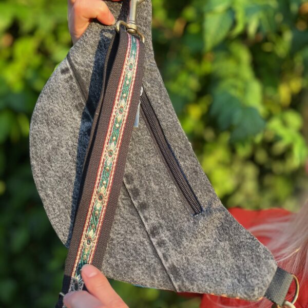 ✅ Pasek – regulowany, ozdobiony etniczną taśmą, dzięki czemu nerka wygodnie dopasuje się do sylwetki.