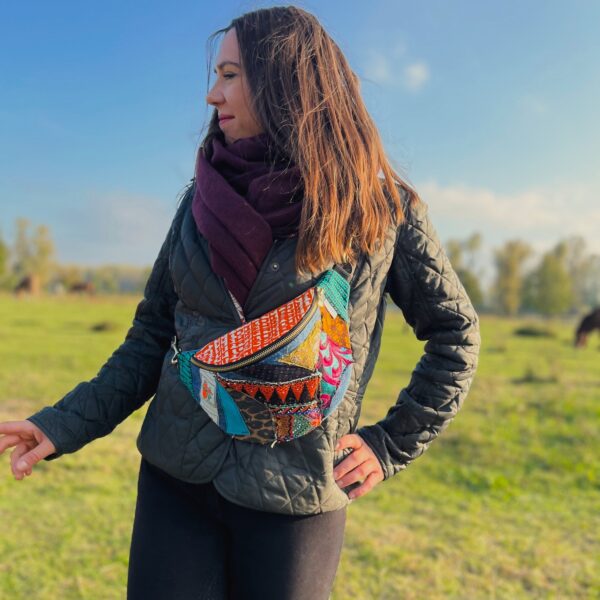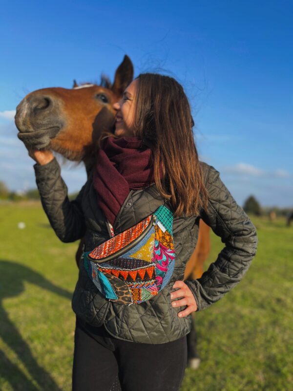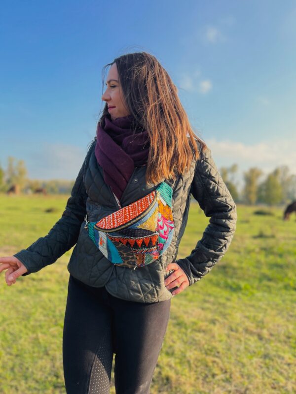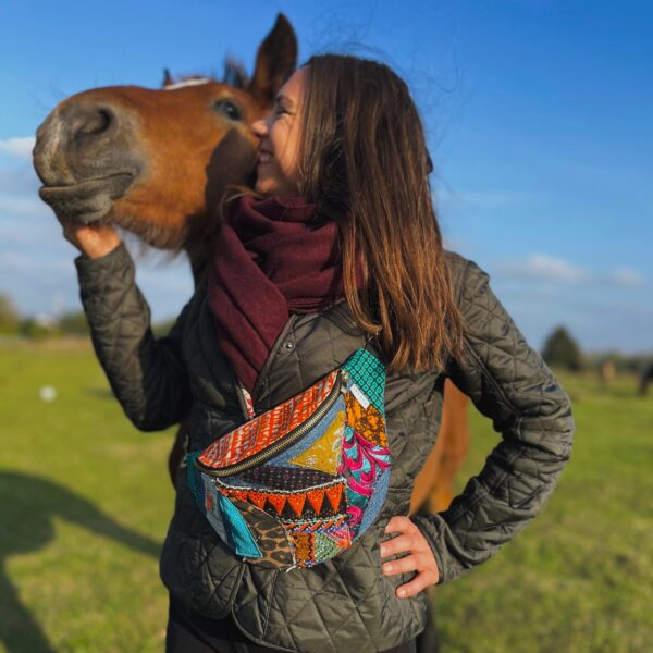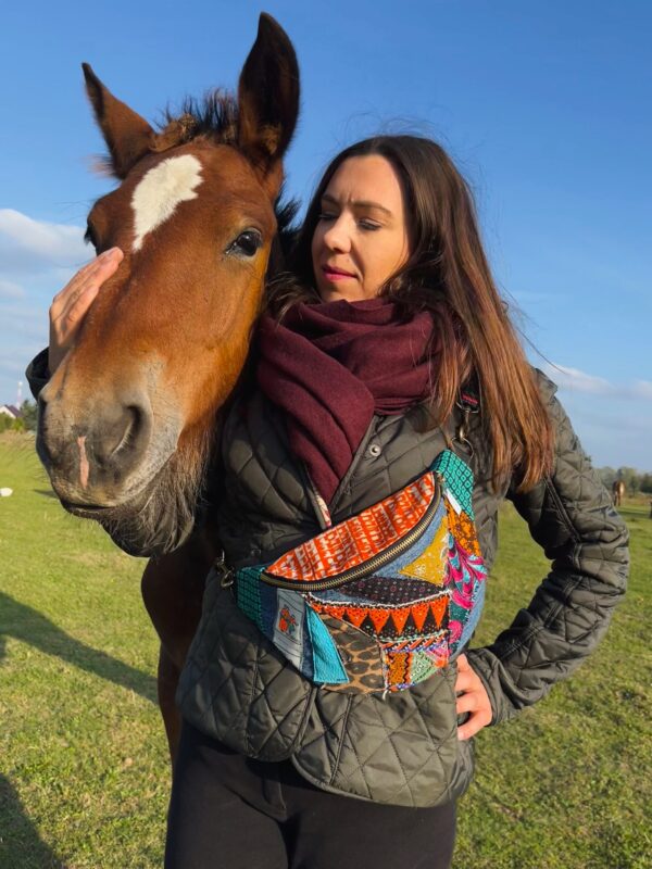 Ta nerka to więcej niż dodatek – to manifest wolności. Uszyta ręcznie z barwnych skrawków tkanin, łączy w sobie energię kolorów i dzikość wzorów, tak jak jazda konna łączy człowieka z naturą.