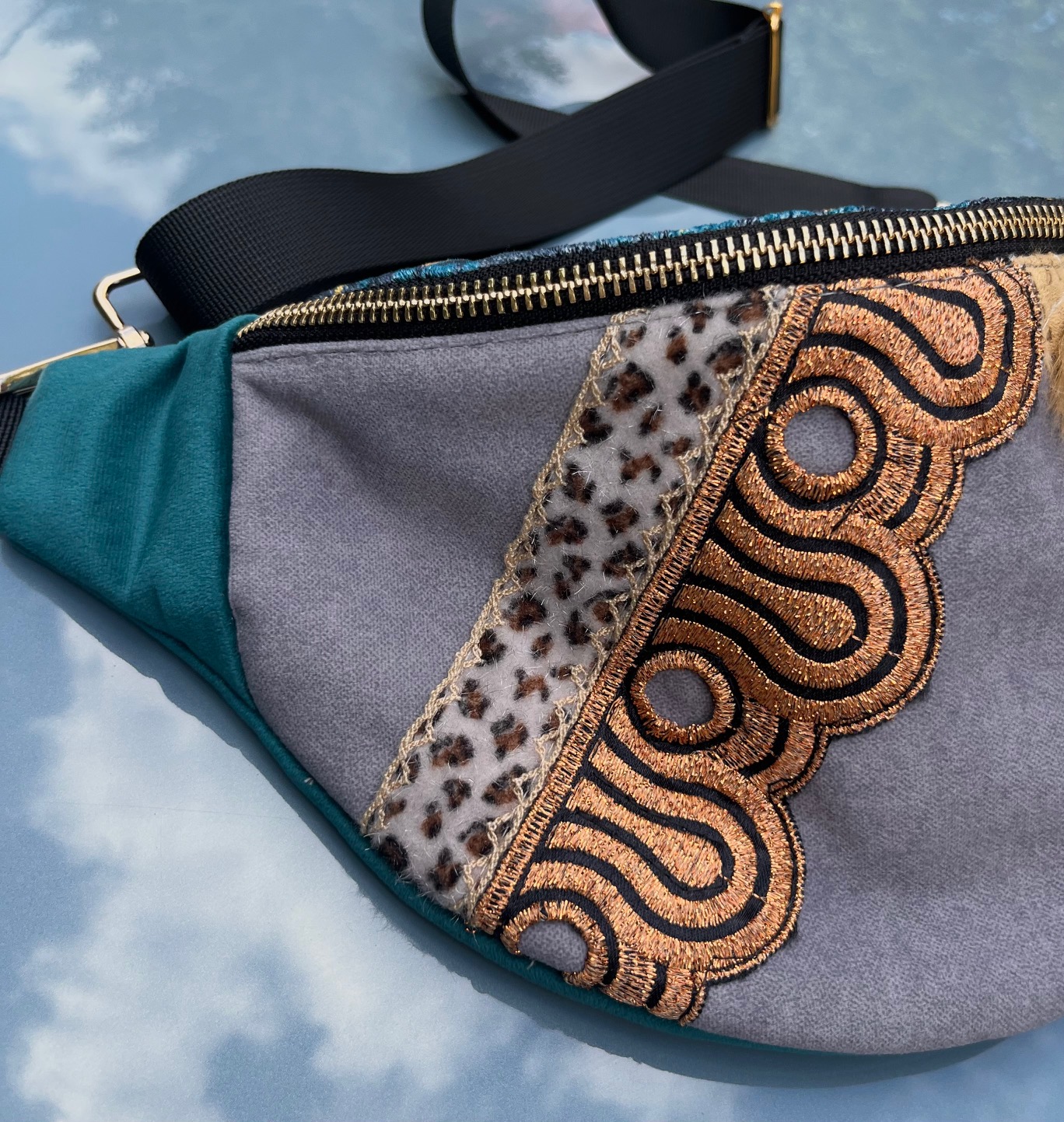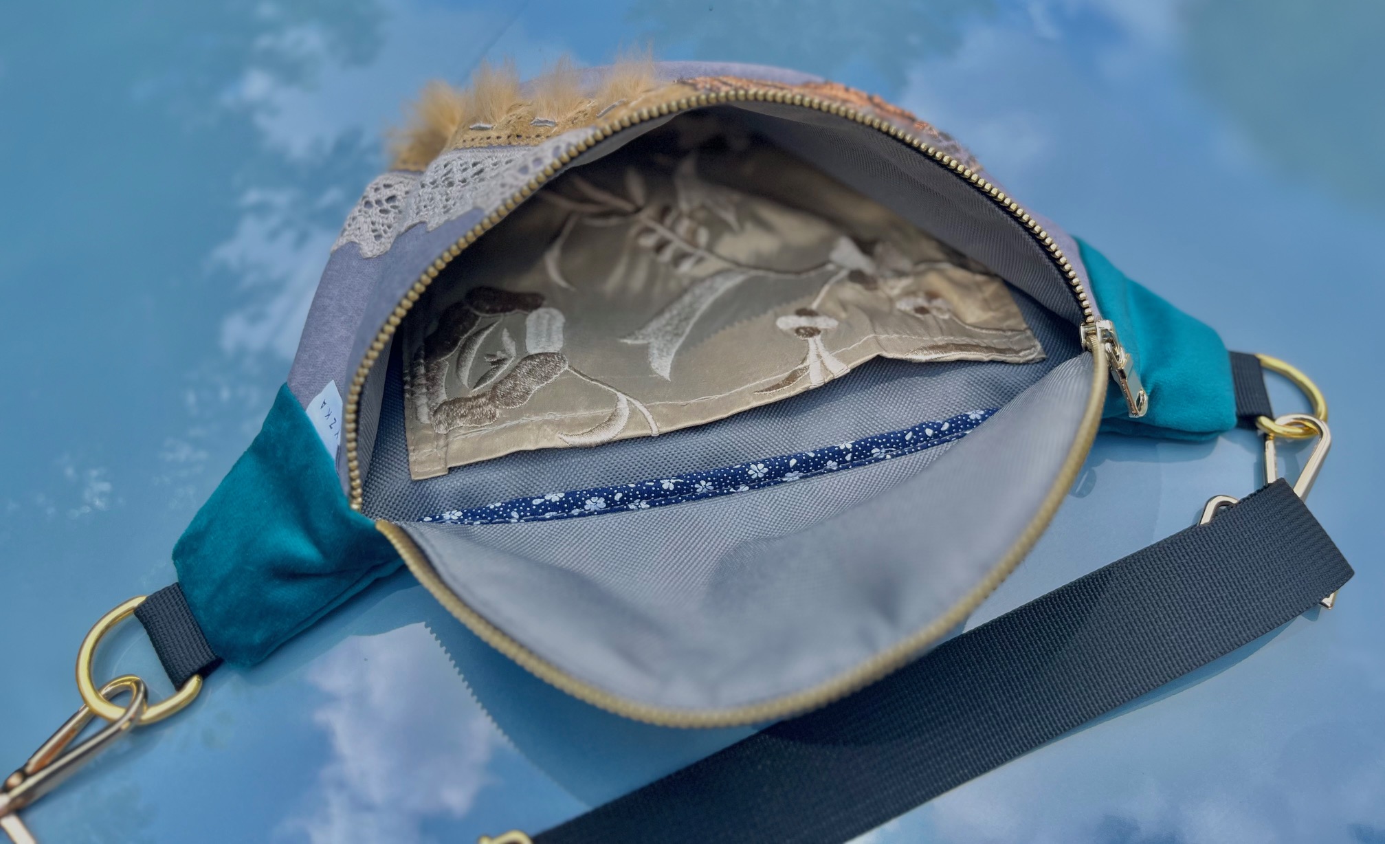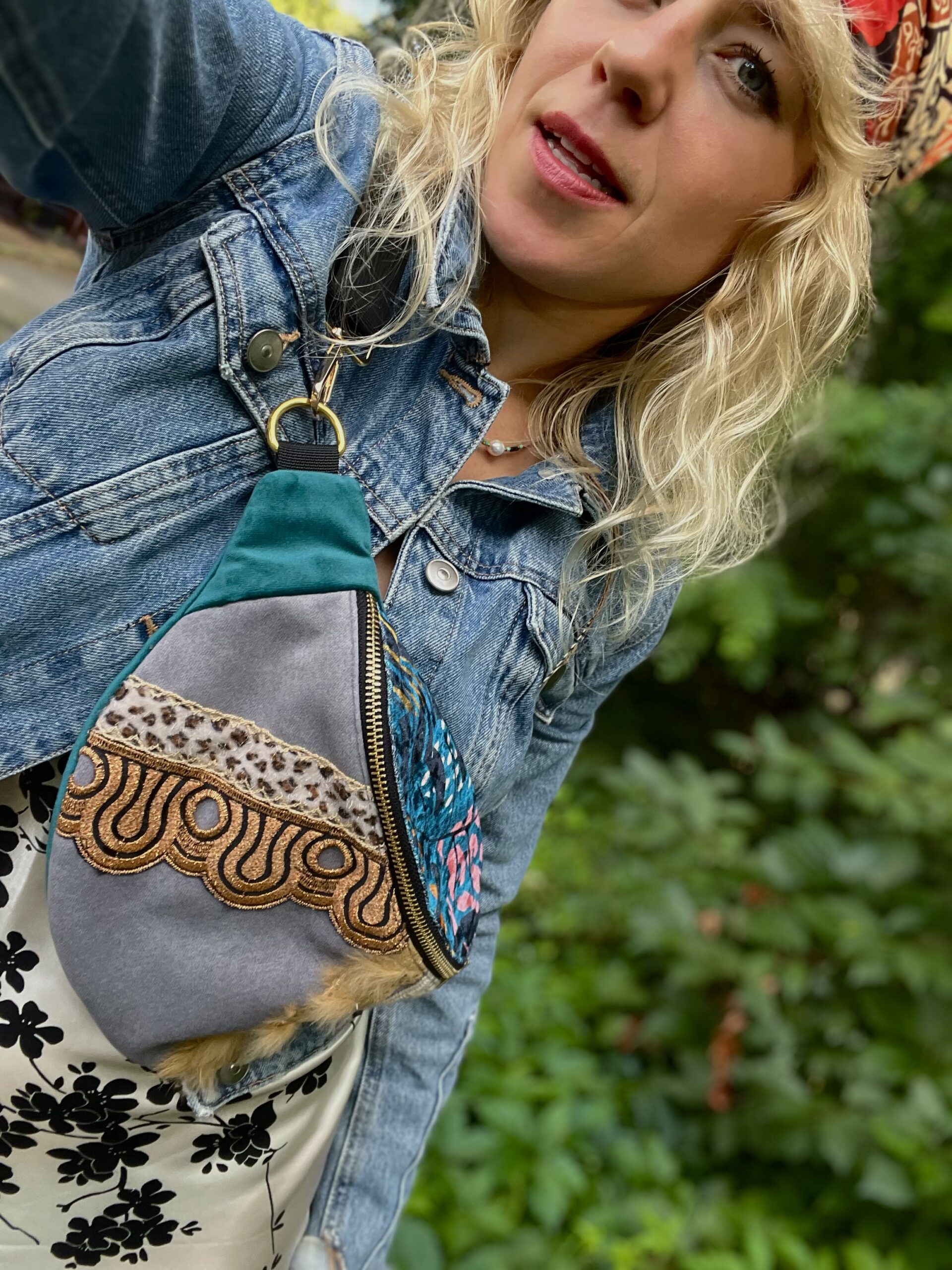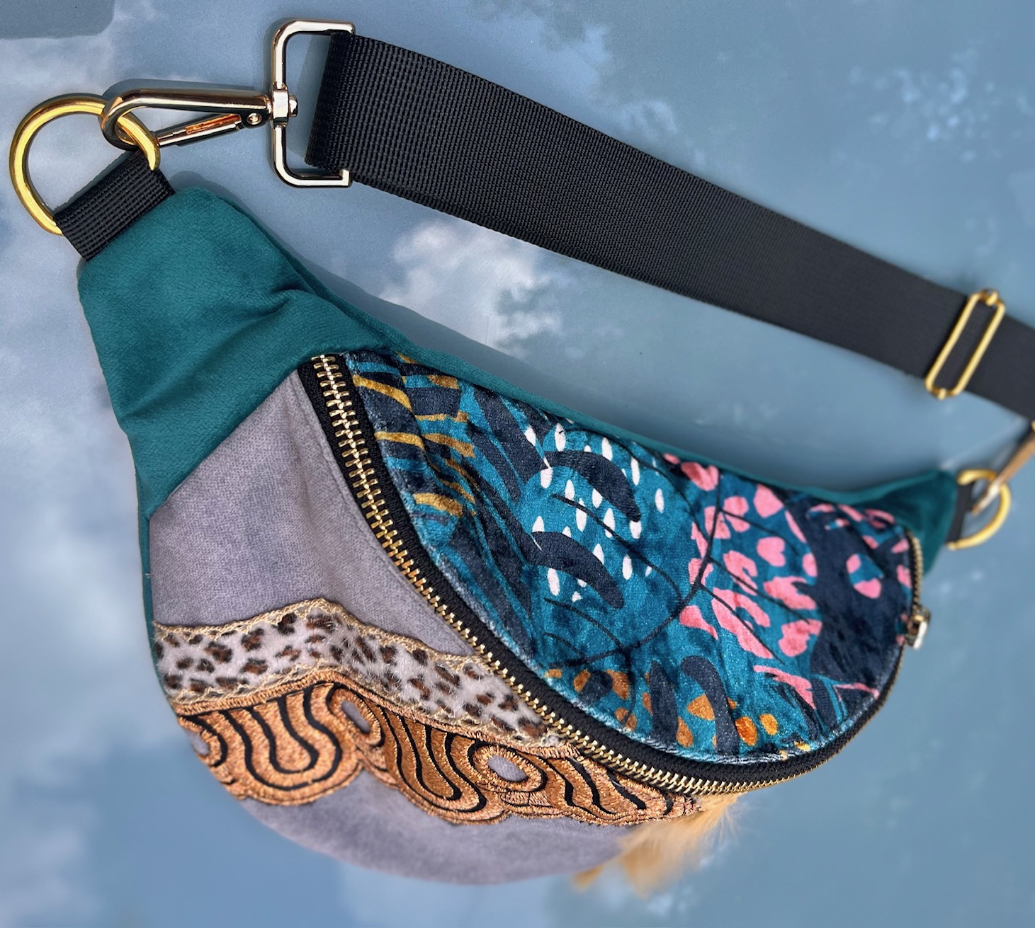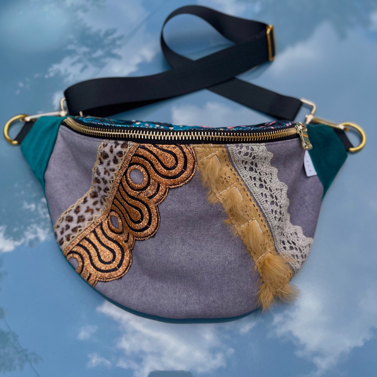 Unikalna nerka handmade wykonana z tkanin z odzysku. Łączy w sobie różnorodne faktury i wzory – od koronek, przez hafty, po aksamitne frędzle i panterkowy akcent. Każdy detal został starannie dobrany, tworząc oryginalną kompozycję w duchu upcyklingu. Idealna dla osób ceniących ekologię, styl i rzemiosło z charakterem.
