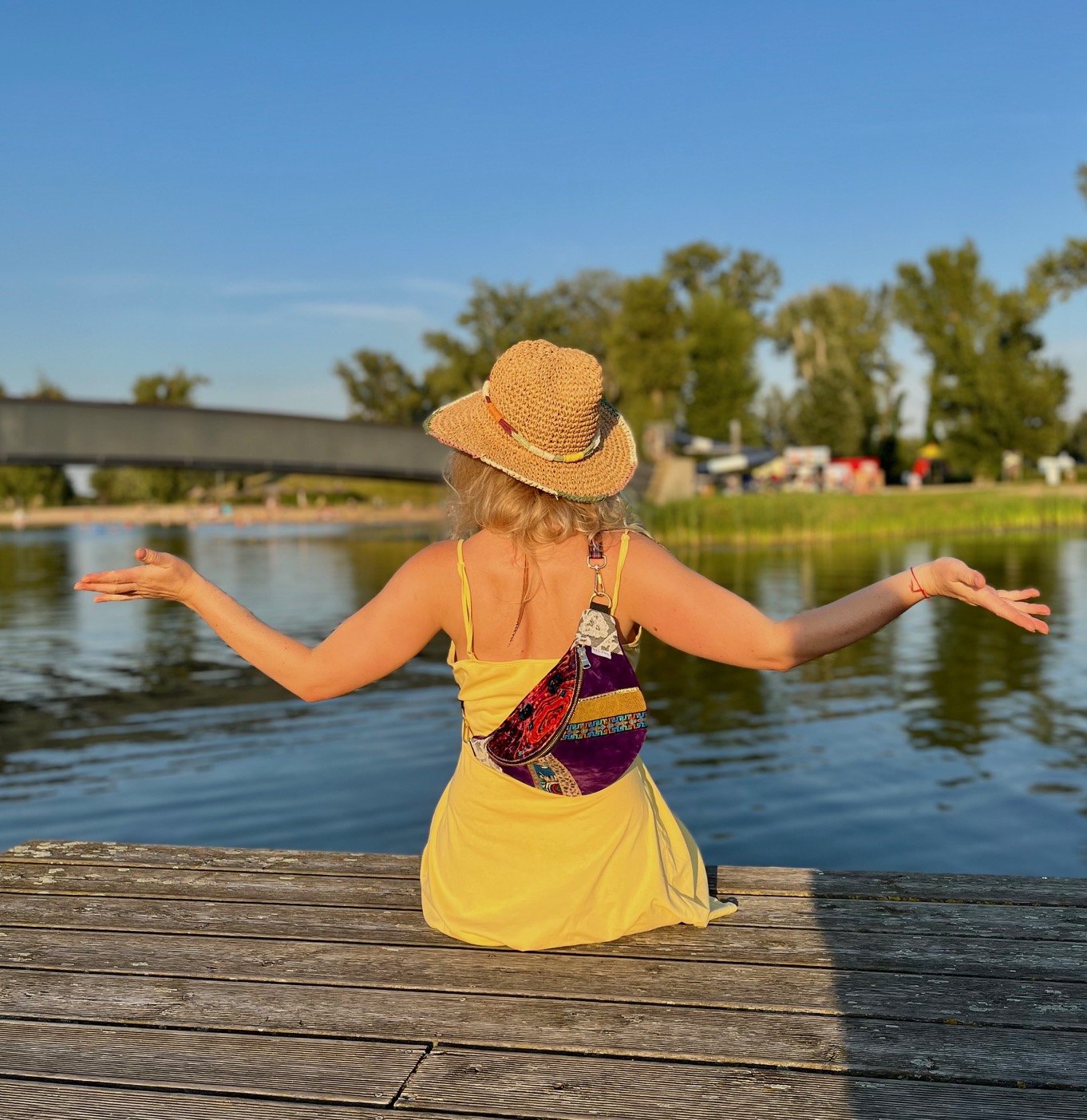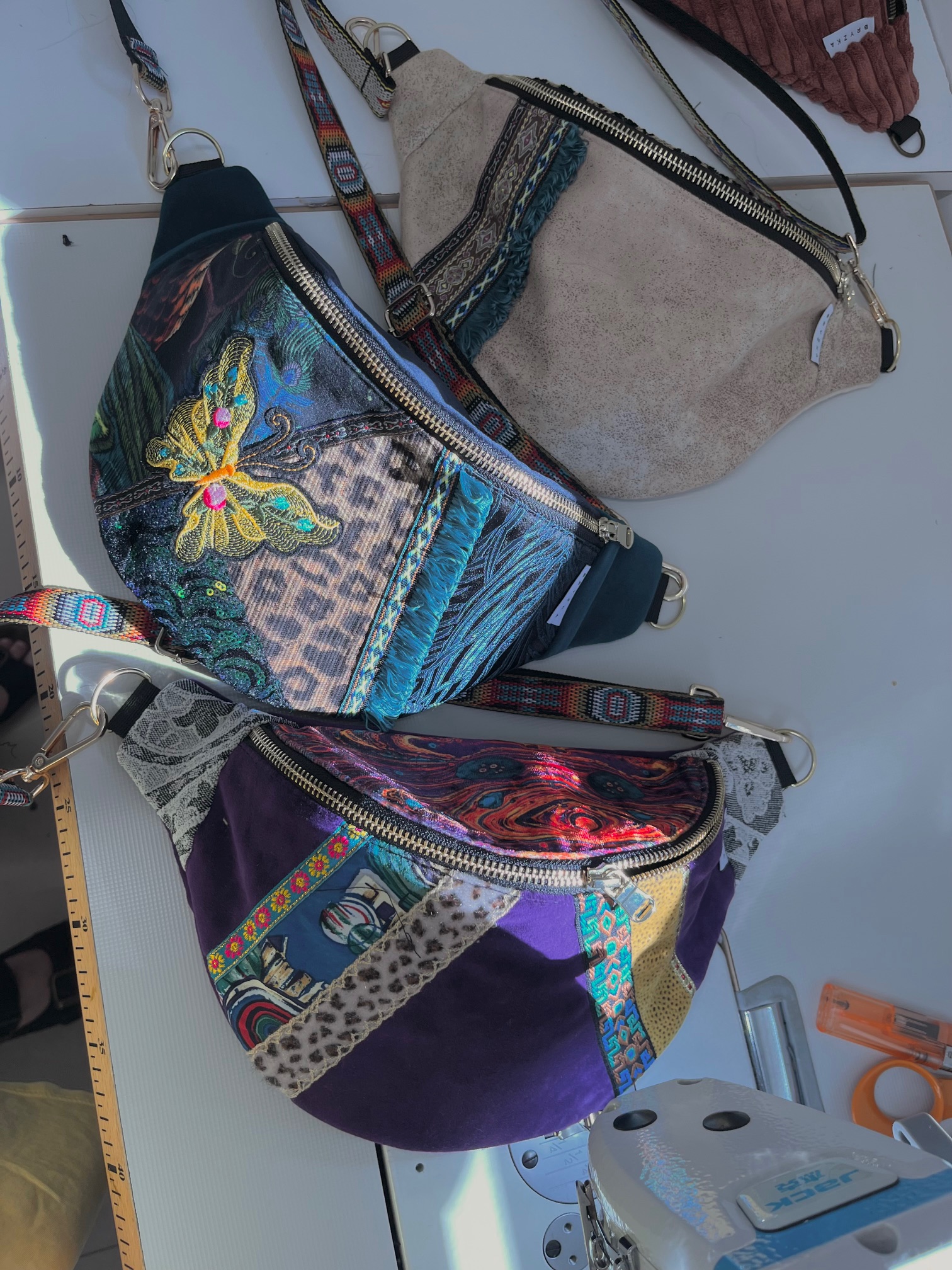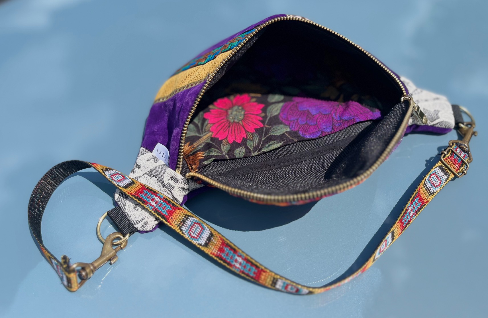 Nerka w rozmiarze M. Nerka saszetka uszyta w kontrastach – pomarańczy – fiolet – żółć. Materiał świetny gatunkowo. Zamek ykk. Kontrastowy pasek. Unikat.