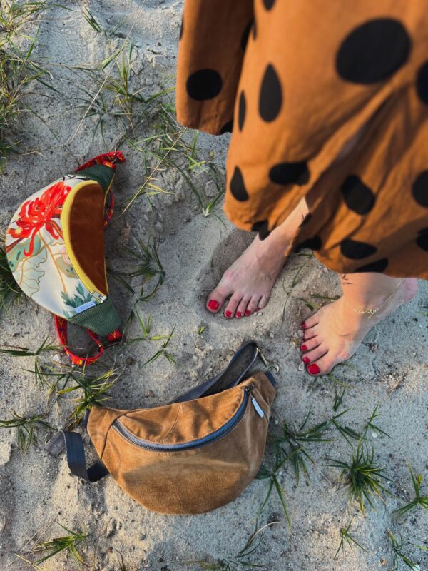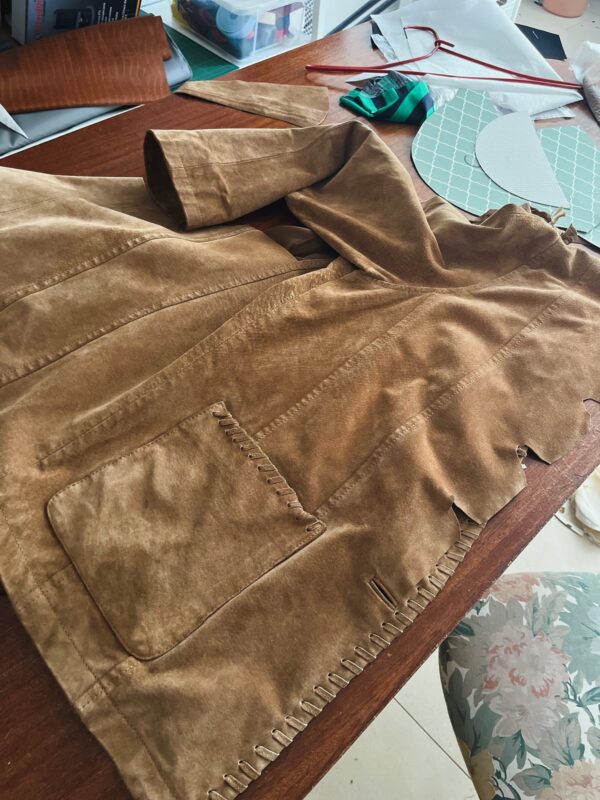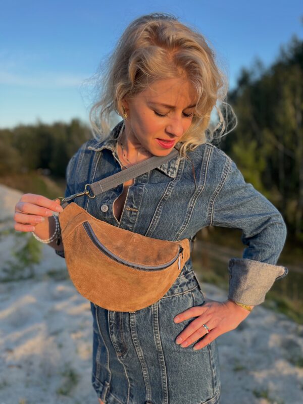 Nerka handmade – basic wśród nerek. Uszyta z kurtki zamszowej w kolorze karmelowym. Stan idealny. Skóra została poddana ozonowaniu w celu usunięcia grzybów i bakterii. Na nerce mogą pojawić się oryginalne przeszycia z kurtki, dodające charakteru całości.