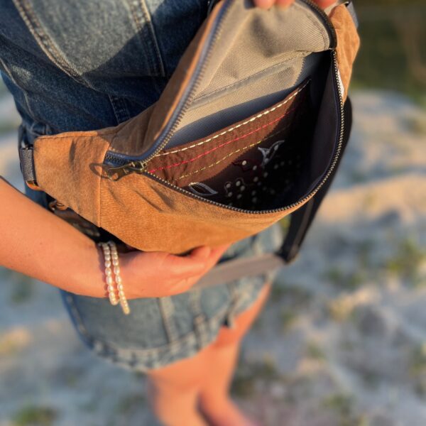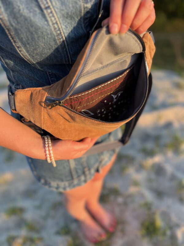Na tyle kieszonka na zamek. Możliwość dopasowania innego paska za dopłatą.