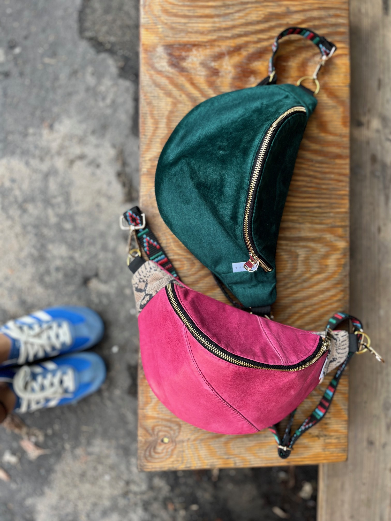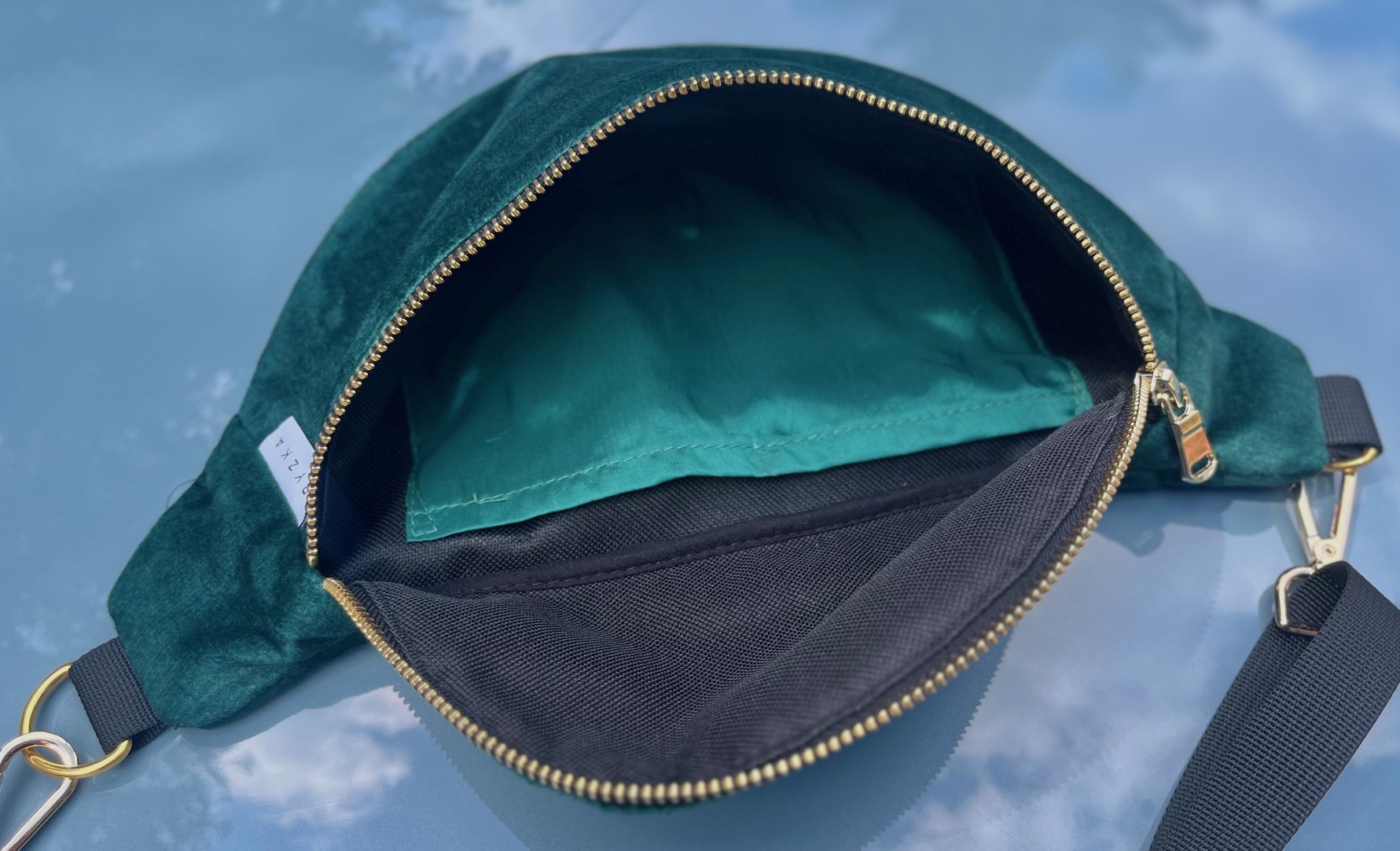 Ta wyjątkowa nerka została uszyta ręcznie z wysokiej jakości weluru, który nie tylko zachwyca eleganckim wyglądem, ale także imponuje swoją trwałością. Tkanina jest miękka w dotyku, ale solidna i odporna na codzienne użytkowanie – idealna zarówno na co dzień, jak i na specjalne okazje.