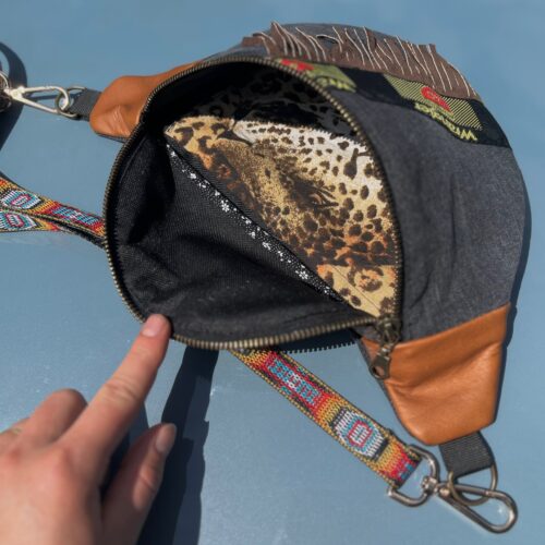 Nerka petit, rozmiar S. Połączenie skór oraz jeansu i frędzli. Eklektyczny styl. Trochę boho, trochę ethno, trochę hygge.
