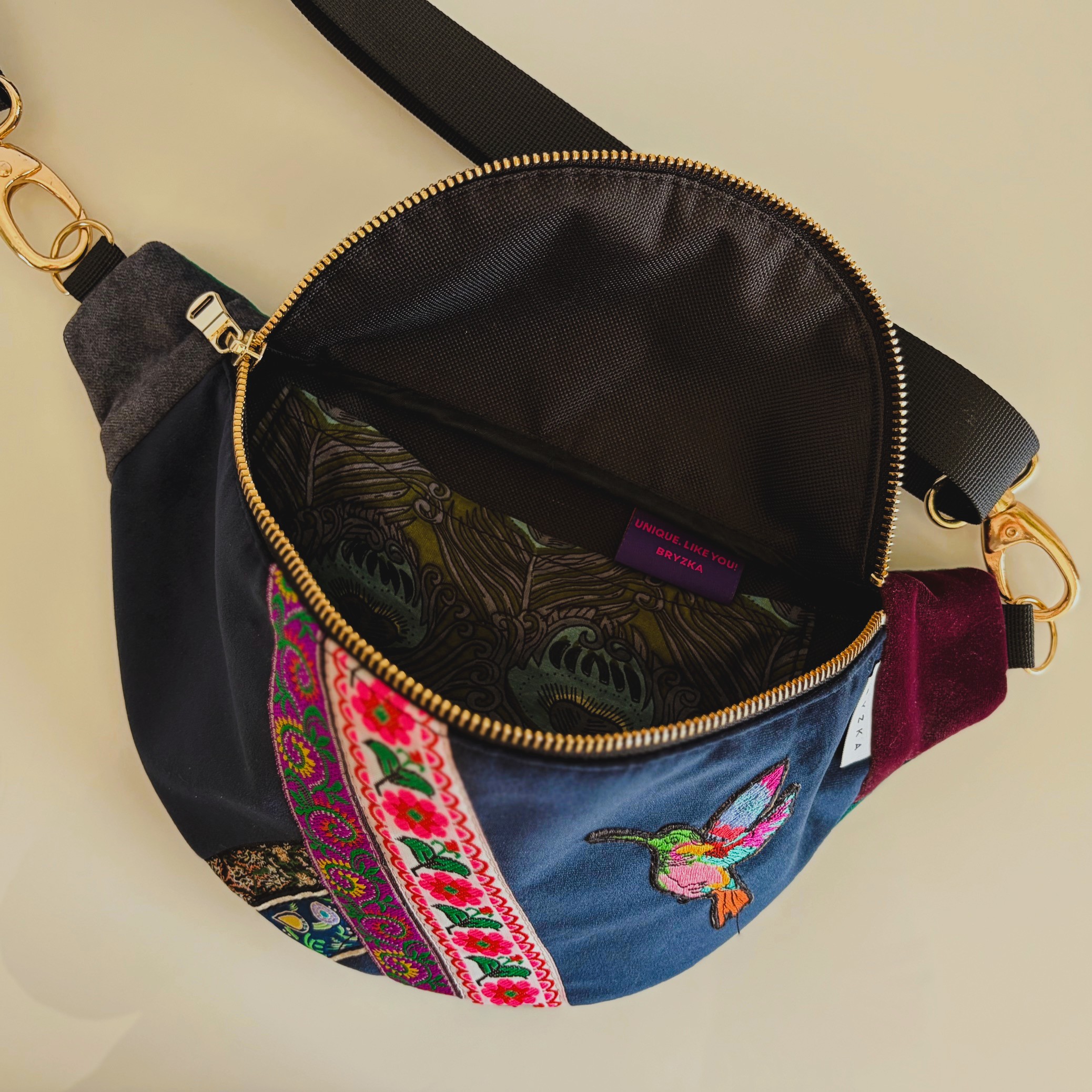 Nerka uszyta z tkanin obiciowych welurowych. Na froncie charakterystyczny koliber. Symbol, logo Bryzki. Symbolizuje lekkość, radość z życia i otwartość na nowe.