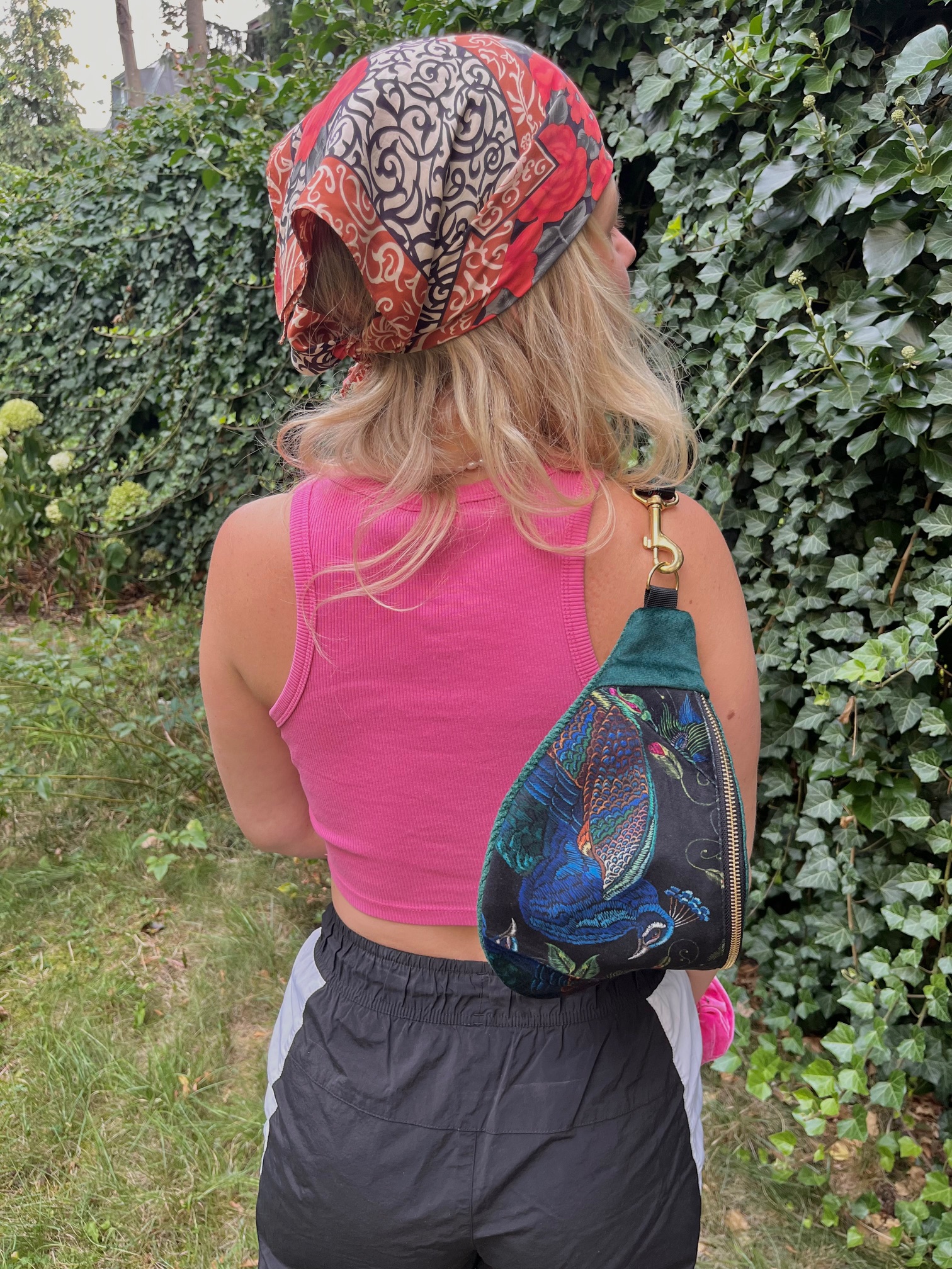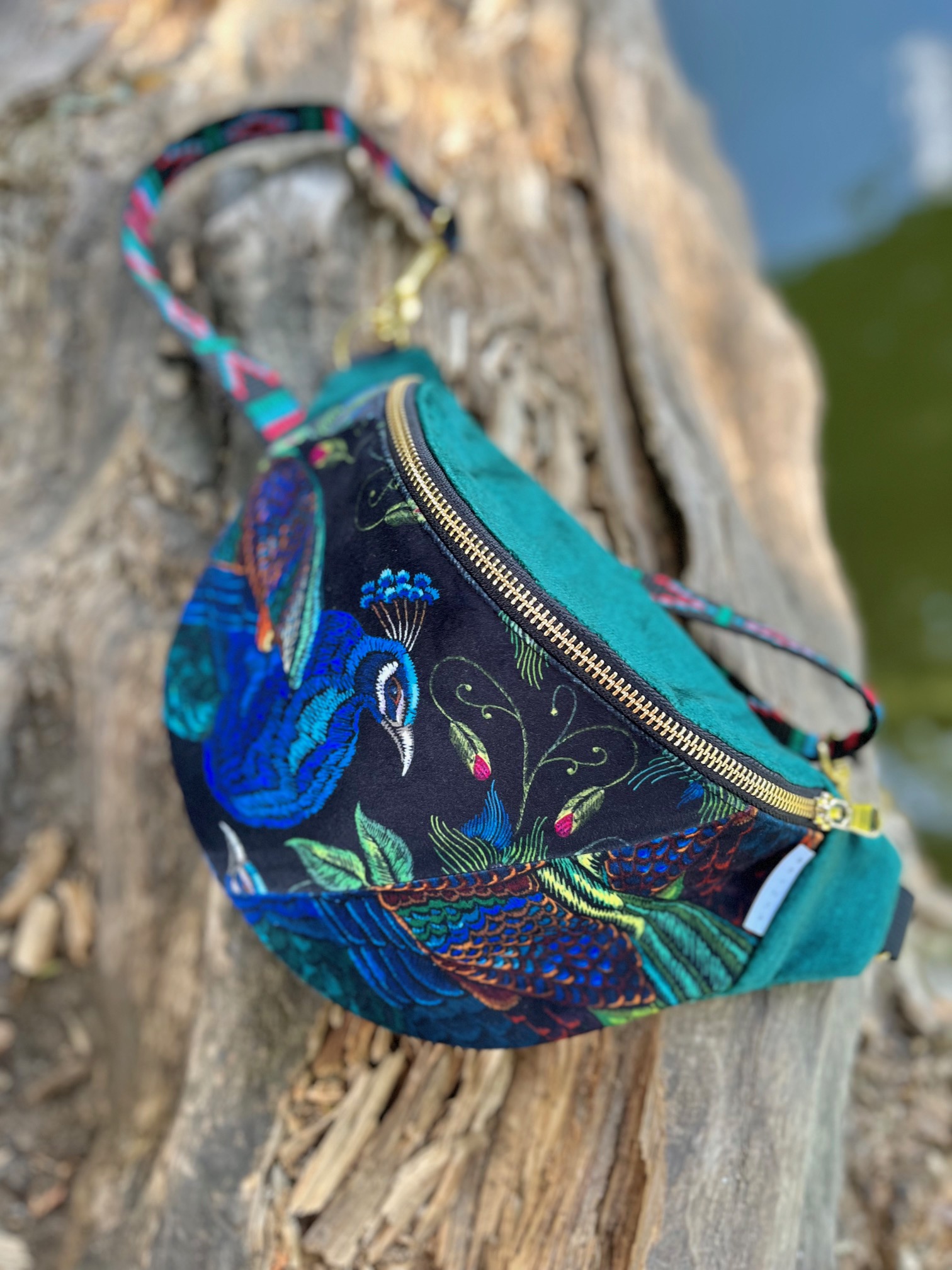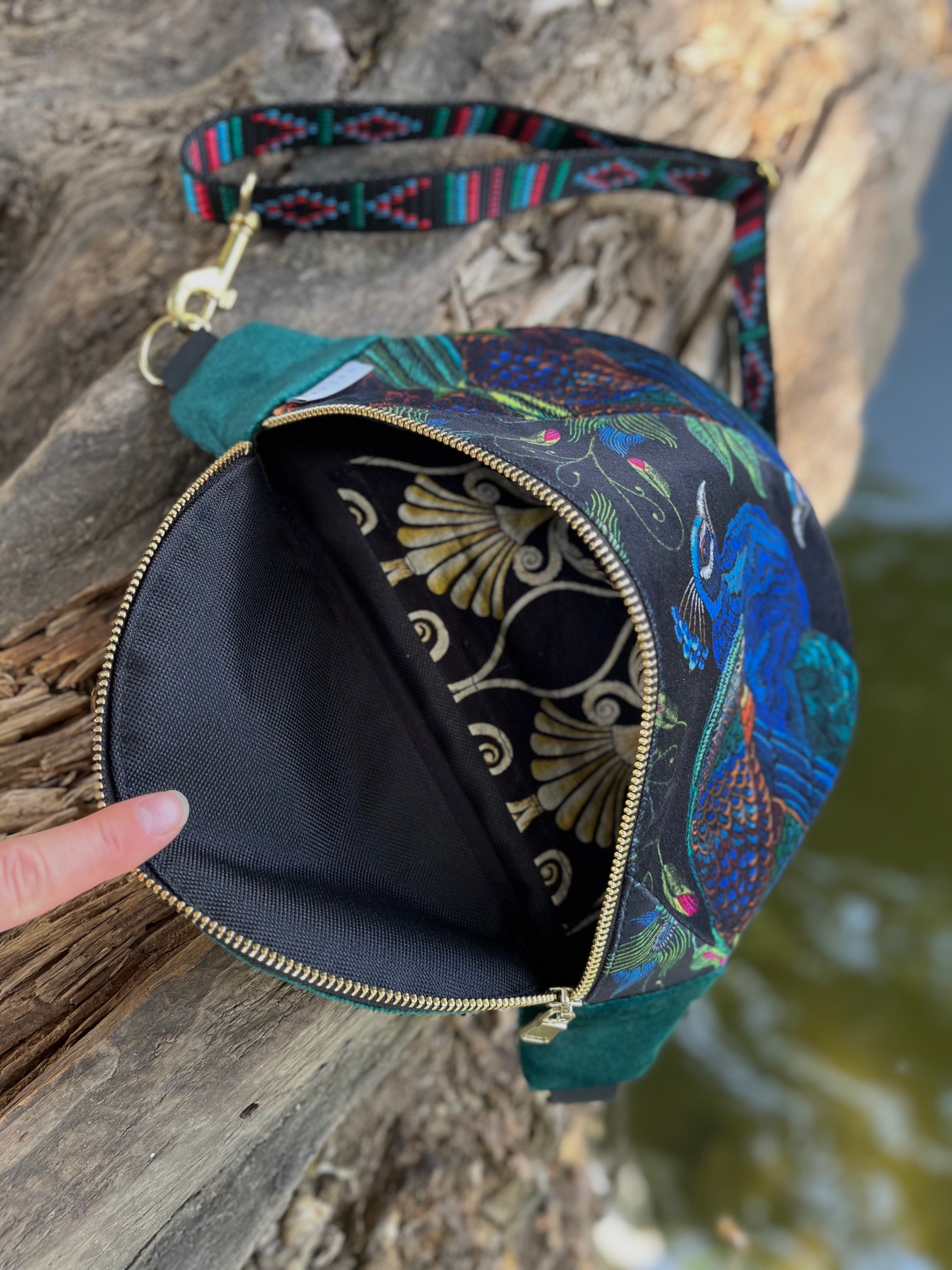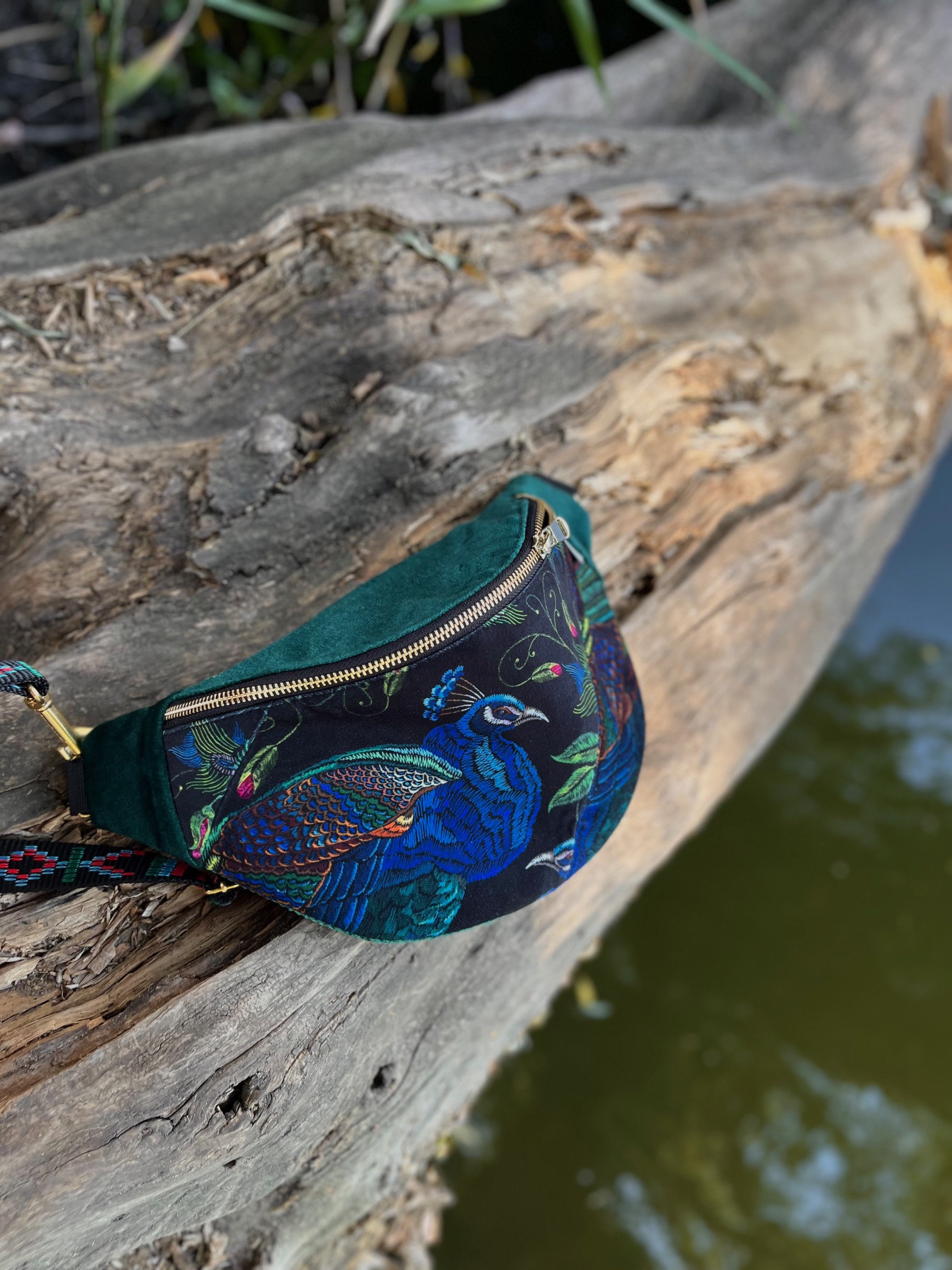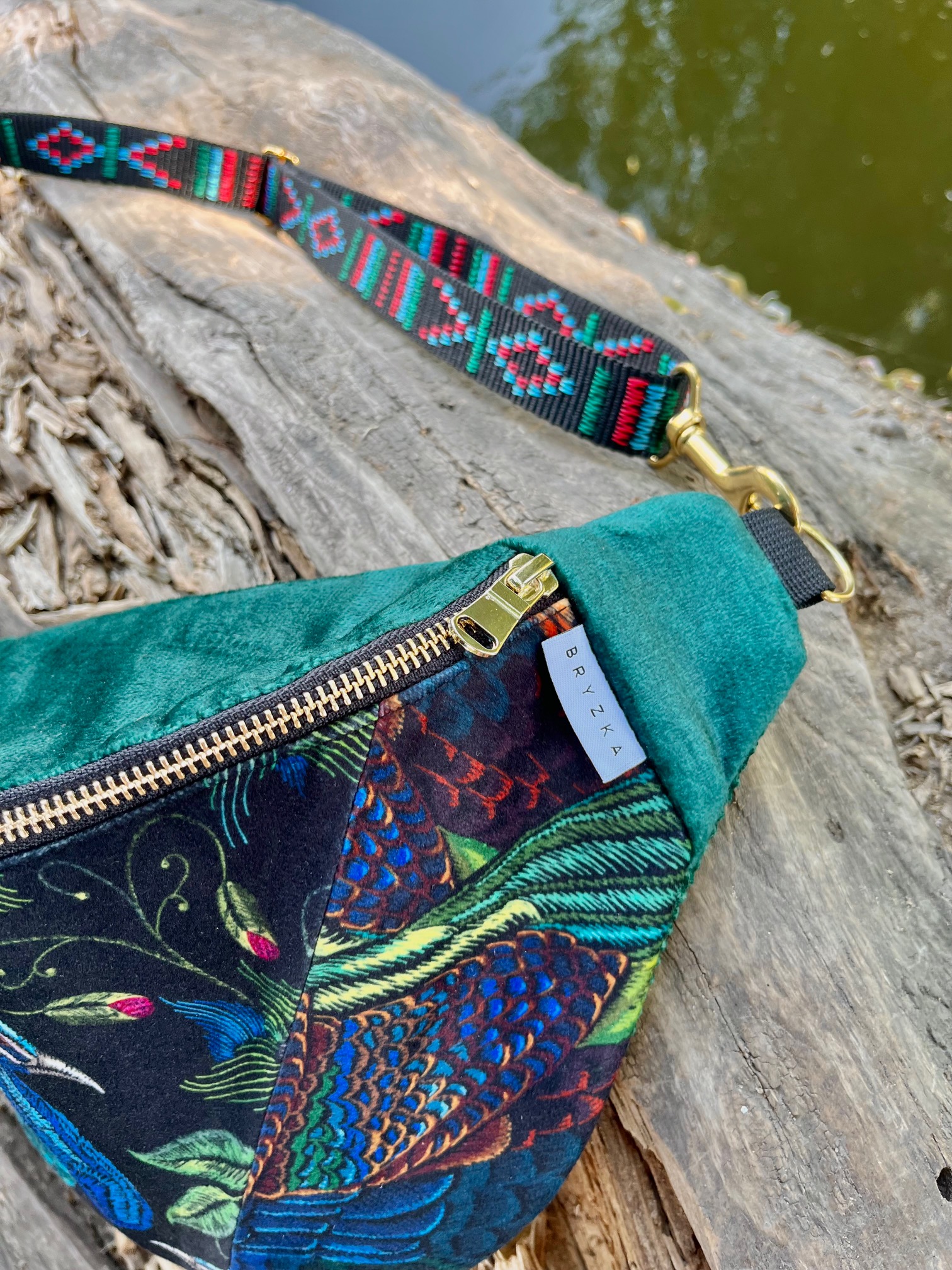 Nerka z motywem pawim, z pięknym wyróżniającym się pawiem w kolorze granatu. Zdobienia złote. Zamek ykk.