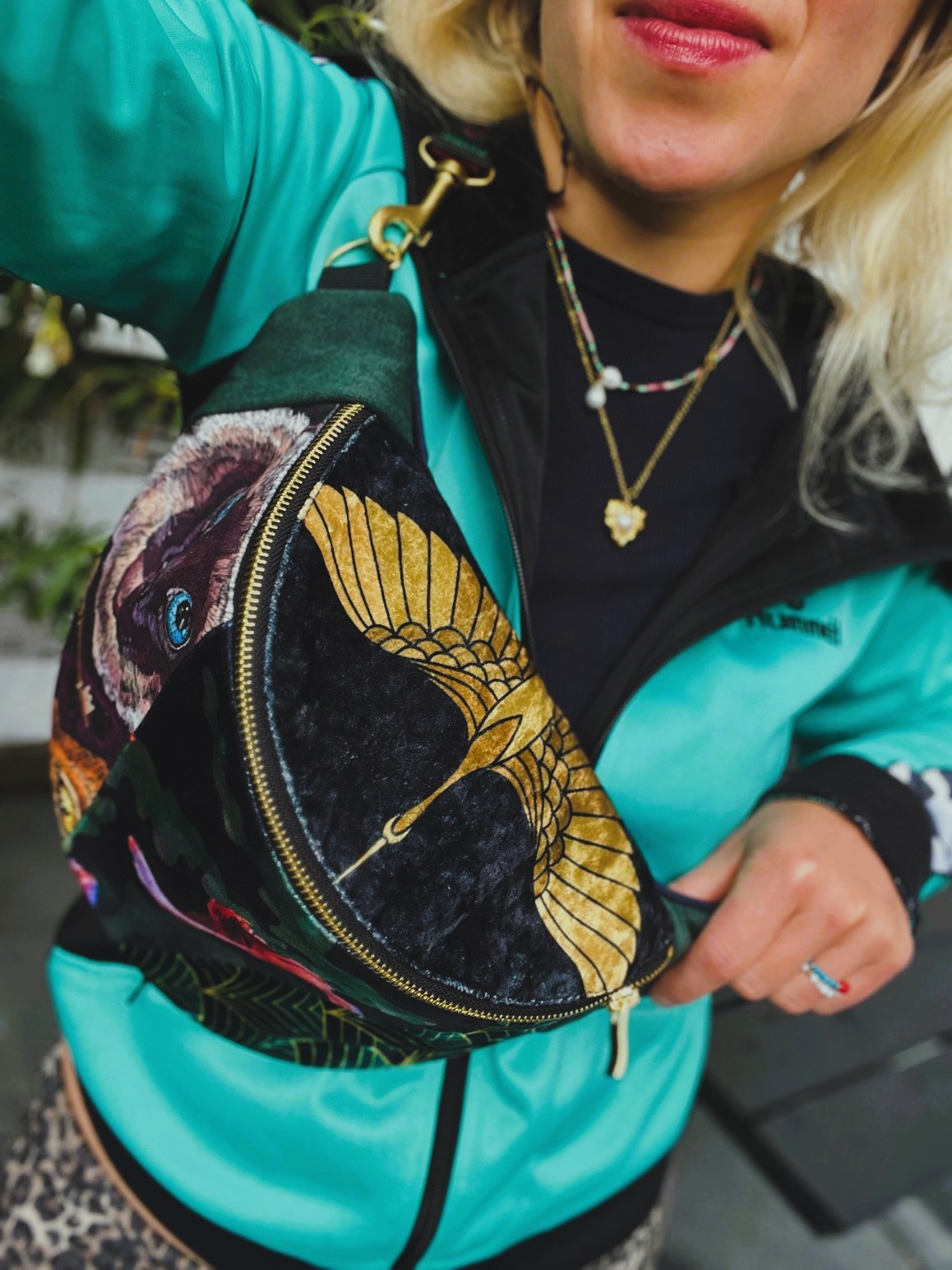 🪶 Złoty żuraw na aksamicie – elegancja i blask