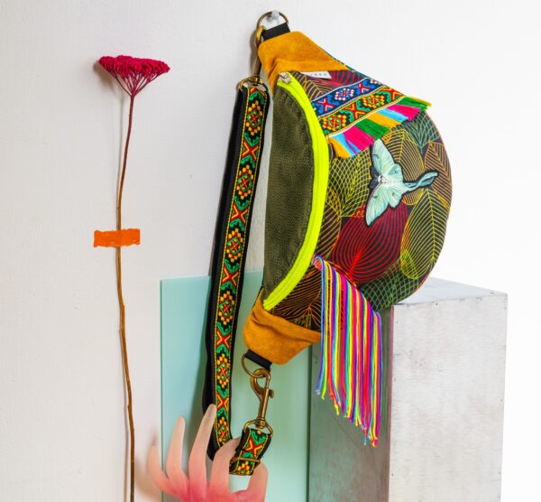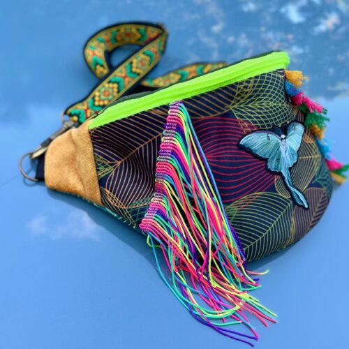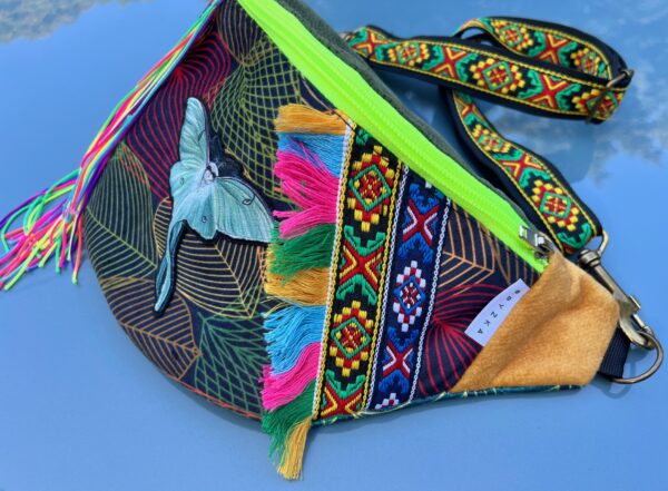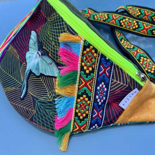 🦋 Ręcznie wykonana, zdobiona haftowanym motylem, kolorowymi frędzlami i etnicznymi wzorami.